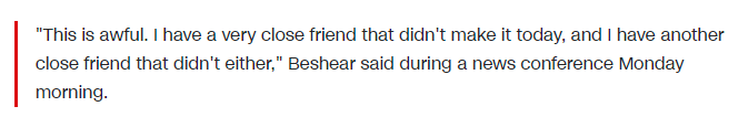 肯塔基州州长Andy Beshear(中)赶到现场,他表示他的竞选团队位于同一栋大楼内,同时他也是这家银行的客户,在这场枪击案中他的两名密友不幸丧生。