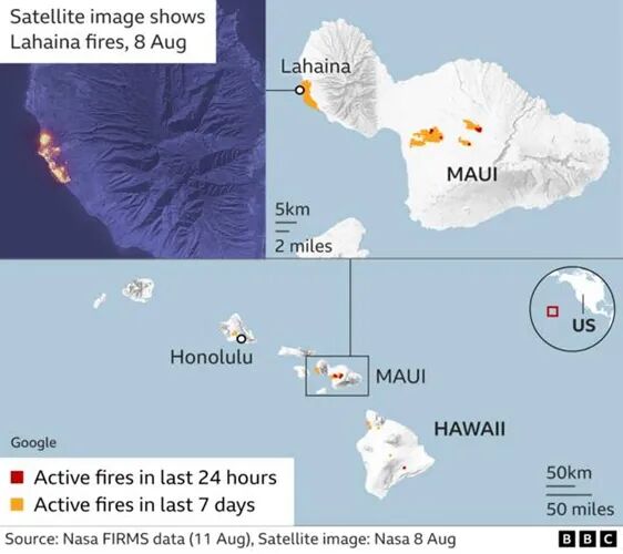 消防队员正在毛伊岛继续扑灭大火并控制全岛火势……换句话说,这场从周二开始燃烧,周三被飓风加持后迅猛蔓延的野火,烧了四天……仍未得到控制。