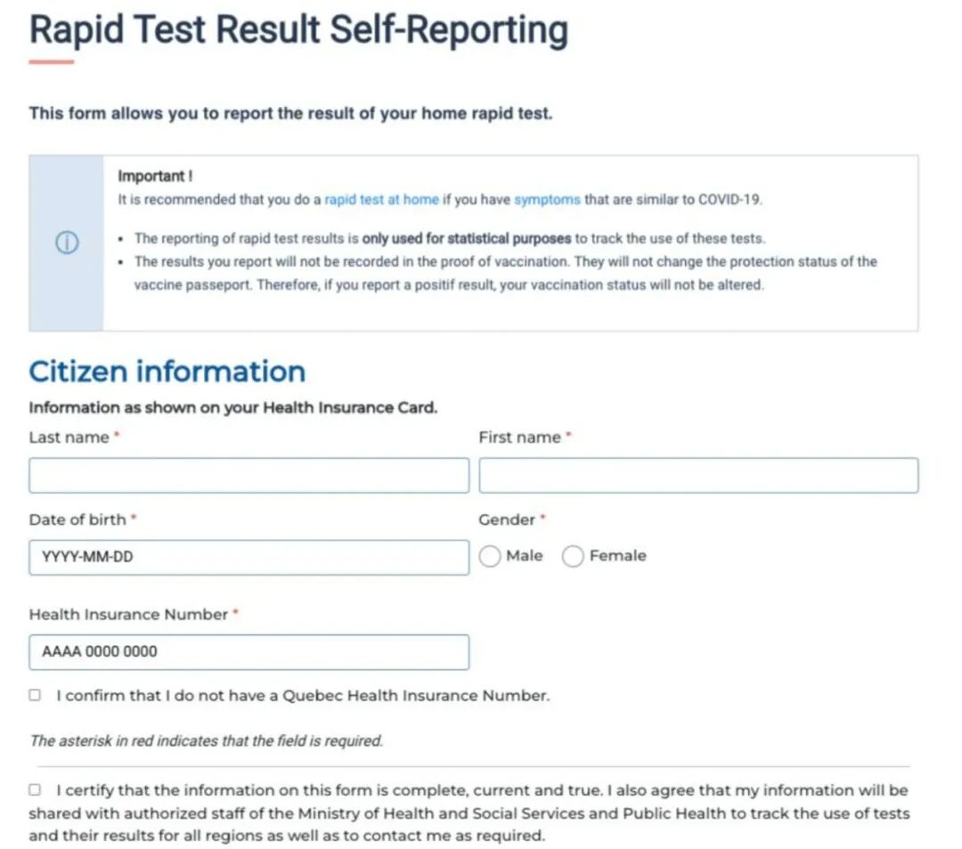 昨日,魁省政府上线了一个网站, 要求居民上传自己在家做的新冠快速检测盒测试结果。网站指南称,人们应该“把每次快速检测的结果都上传,无论是阴还是阳”。