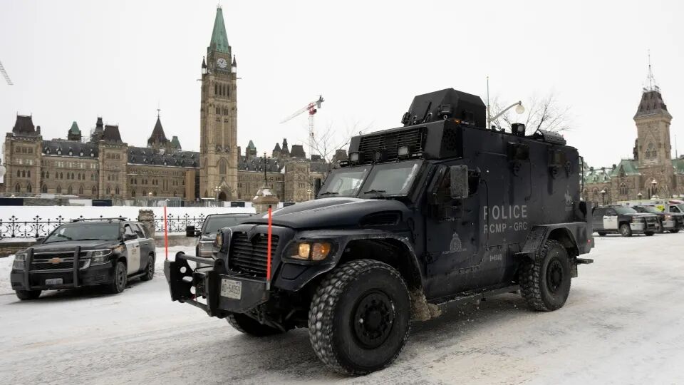 今早位于市中心Wellington St.的主要抗议地点,卡车和抗议者们已经消失不见,取而代之的是警车和大批警察。警方设立的安全区域为,西至Bronson Ave.,东至运河,南至Queensway,北至国会山庄。