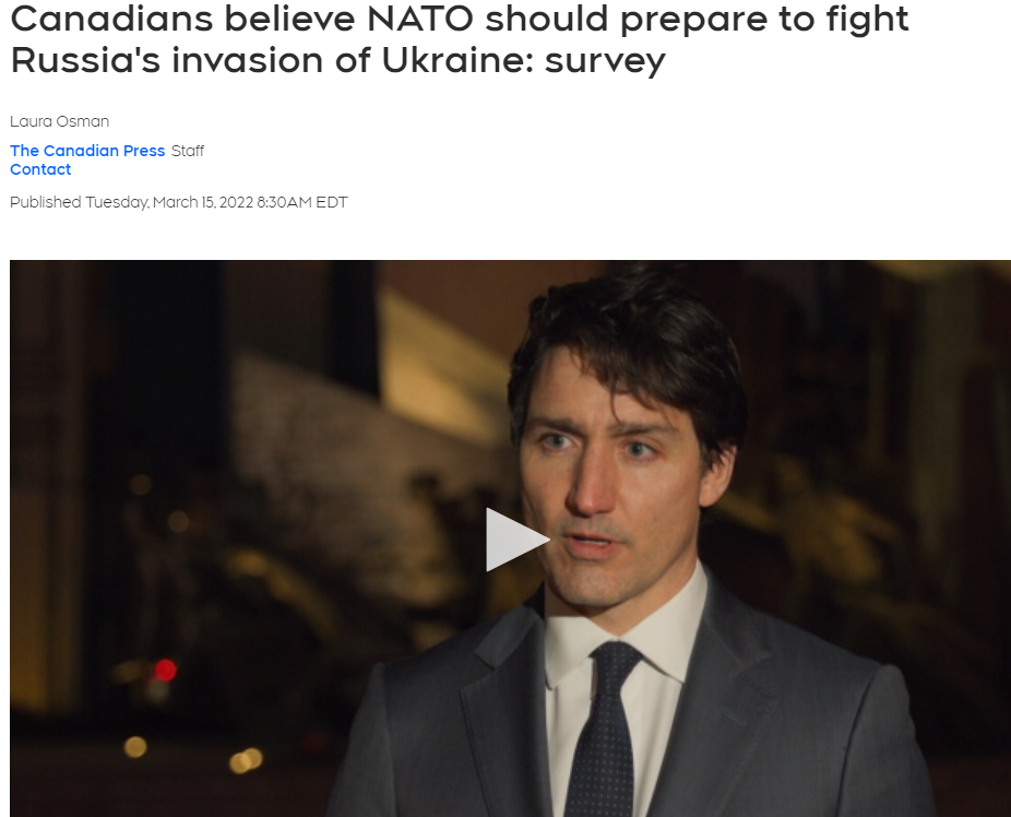Leger于周五至周日对1,515名加拿大人进行在线调查。其中:49%的加拿大人“仍然相信通过外交手段结束战争是可能的”。65%的加拿大人表示:政府应该对俄罗斯实施更严厉的制裁,即使这意味着西方国家的天然气价格飙涨。62%的加拿大人认为:目前制裁主要伤害了俄罗斯人民,而不是直接伤害俄罗斯总统普京。66%的加拿大人认为:应该允许乌克兰加入北约,尽管此举可能会令盟国与俄罗斯发生直接冲突。多达75%的加拿大人相信:随着俄罗斯与乌克兰的战争升级,北约盟国应该为军事打击俄罗斯做好准备。leger在调查结果页面警告称:由于此项调查基于互联网,因此不能针对随机样本确定误差范围。