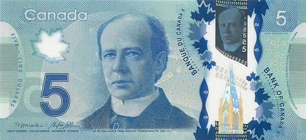 你注意过5元加币钞票上的主题人物是谁吗?现在是加拿大第七任总理Sir Wilfrid Laurier。
