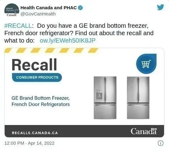 据CTV报道,由于存在潜在的跌倒危险,加拿大卫生部发布通知,召回三款通用电气(GE)品牌冰箱与冰柜。