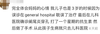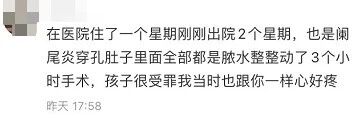 然而,让人大跌眼镜的是,第二次问诊的医生却给出了跟上次完全不同的说法。“医生说,孩子得的是阑尾炎,需要立即做手术,因为情况已经很严重了。”“给孩子做手术的医生说,已经穿孔了,应该是几天前穿孔的。而且肚子里面还有很多液体,需要清理。原本20分钟的手术变成1个小时。”华人妈妈听到后气愤又心疼,哭着表示:“如果不是第一个医生的误诊,孩子做个小手术第二天就能出院,也不用在手术前多疼三天。”