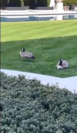 近日,他家后院来了两只加拿大鹅,每天在草坪上肆意拉屎……关键是,两只大鹅“鸠占鹊巢”,赶都赶不走,害得Drake不能再晒日光浴。Drake在各大社交媒体上吐槽此事,网友们哀其不幸之余,也纷纷感叹,有大豪宅、有大院子、有好多钱……又能咋样?享用不到啊……在其发布的一则视频中,他介绍了他家来的这两只“不速之鹅”——眼见这两只大鹅堂堂正正威风凛凛、光天化日走哪儿拉哪儿……他惊呼,草坪上随处可见的大屎橛子几乎要把他家的整个后院都给淹没了……