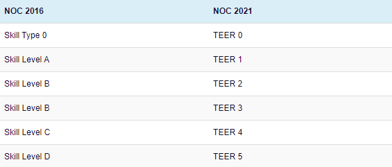 3. 裁缝、女装裁缝、毛皮裁缝和女帽裁缝(tailors, dressmakers, furriers and milliners)不过,这3个职业仍然有资格参加其他有更广泛职业资格的移民计划,比如省提名计划的某些类别。此外,2021年版NOC还将目前的5类系统(NOC 0 A B C D),改成新的6类系统(TEER 0-5)。新系统概述了进入每个职业所需的培训、教育、经验和责任(TEER)水平。