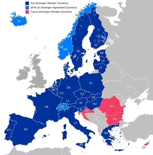 以下是2023年5月开始,到达边境时需要有效ETIAS的欧洲国家: