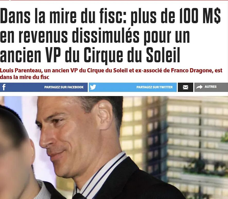 2015年Louis Parenteau觉得风声有些紧,随即将3,320万美元和一些其他款项捐赠给了名为Fiducie patrimonale Louis Parenteau信托基金(顾名思义,就是他自己的信托基金),以躲避债务和税收机关的追讨。