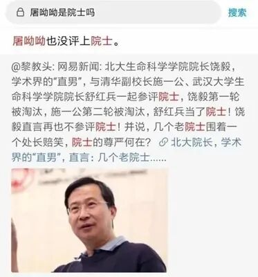 近日网传中科院院士评选,曾获得诺贝尔奖的屠呦呦的名字再次没能出现在新一批院士增选名单上……此前,屠呦呦曾多次参选院士,但均未当选。屠呦呦屡次“落选”引发巨大争议。