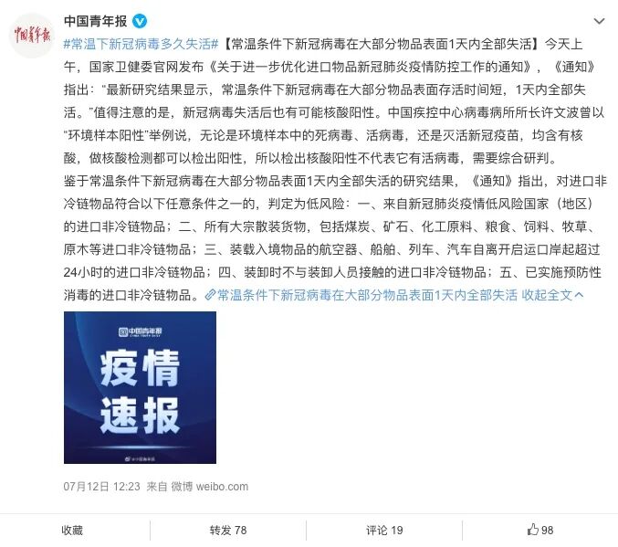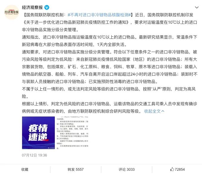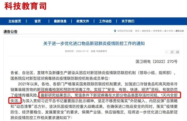 7月12日,中国国家卫健委网站悄悄发布了一则重磅公告:《关于进一步优化进口物品新冠肺炎疫情防控工作的通知》。