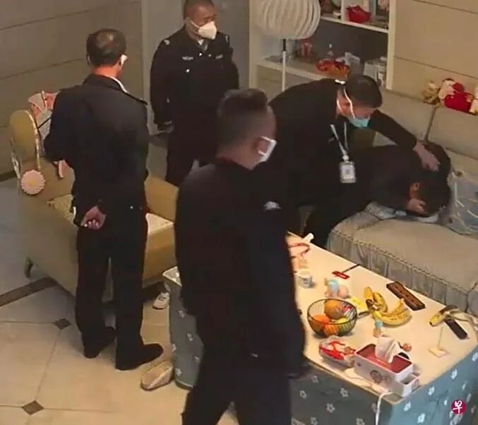 最让人心碎的是,业主家中两个年幼的孩子跑入画面,看到此景大声哭喊,并叫“爸爸妈妈”,被两名警察带出现场。