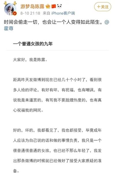 在霍尊退圈儿的那段时间里,陈露一直都是一副受害者的形象——如果事情到这里结束,陈露或许可以顺着这一巨大的委屈重新塑造自己的人生,摆好人设,弄点事业,其实也挺不错的……