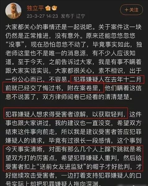 独立平比较冷静,他表示,网友们的思路就是看热闹不嫌事大。
